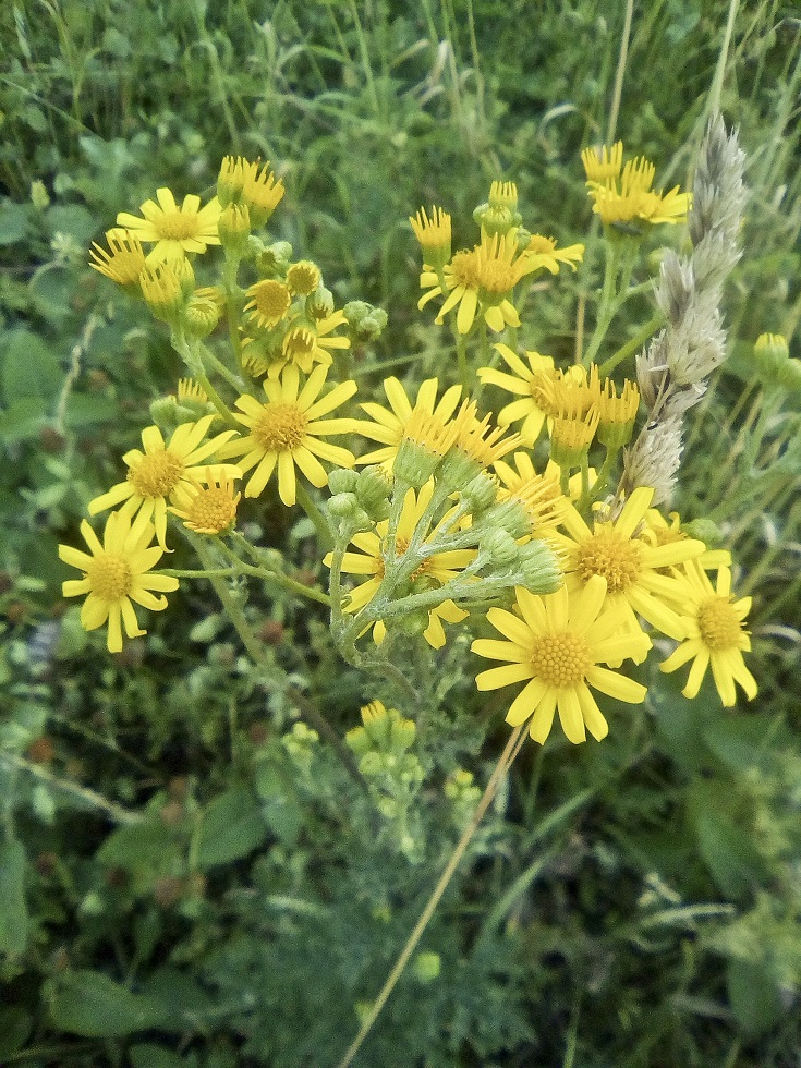 Botanická poznávačka - žluté květy, 13 okvětních lístků, vyboulený střed květu (starček přímětník)